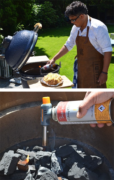 Het aansteken van de kamado